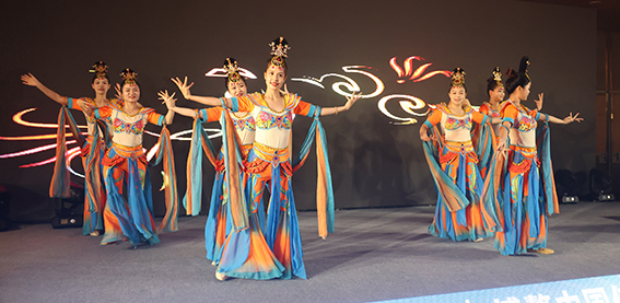 晚宴文艺表演环节精彩纷呈,舞蹈《敦煌》首先带领观众领略了千年敦煌的辉煌与魅力。