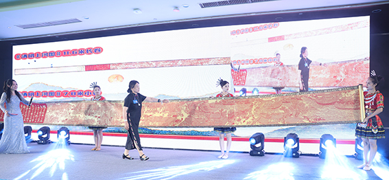 紧接着,焦丽华女士展示了其100米剪纸作品《我们是龙的传人,祖国的未来》,将清明上河图的繁华景象展现得淋漓尽致。